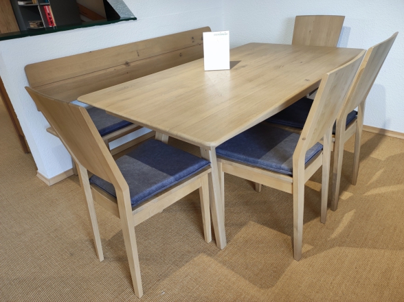 Ausstellungsgruppe Modell COMO SOFT Wildeiche bianco geölt best. aus: Eckbank 230 x 160 cm, Tisch 160 x 90 cm, 3 Stühle